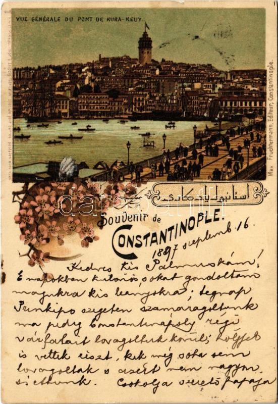 Beschreibung: 1897 (Vorläufer!) Constantinople, Istanbul; Vue générale du Pont de Kura-Keuy / bridge. Max Fruchtermann Art Nouveau, floral, litho (fl)