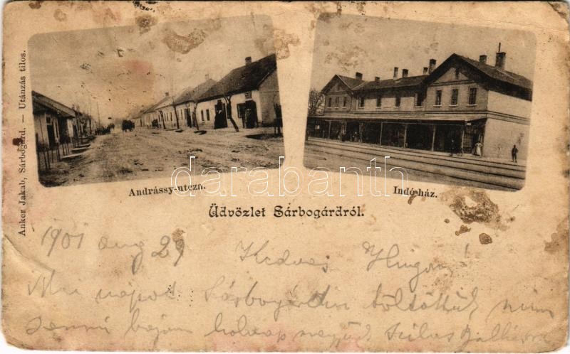1901 Sárbogárd, Andrássy utca, üzletek, Indóház, vasútállomás. Anker J... https://www.darabanth.com/de/420-Fernauktion/420.0/Ansichtskarten/Ungarn~1000004/1901-Sarbogard-Andrassy-utca-uzletek-Indohaz-vasutallomas-Anker-Jakab-kiadasa-b~II2664937