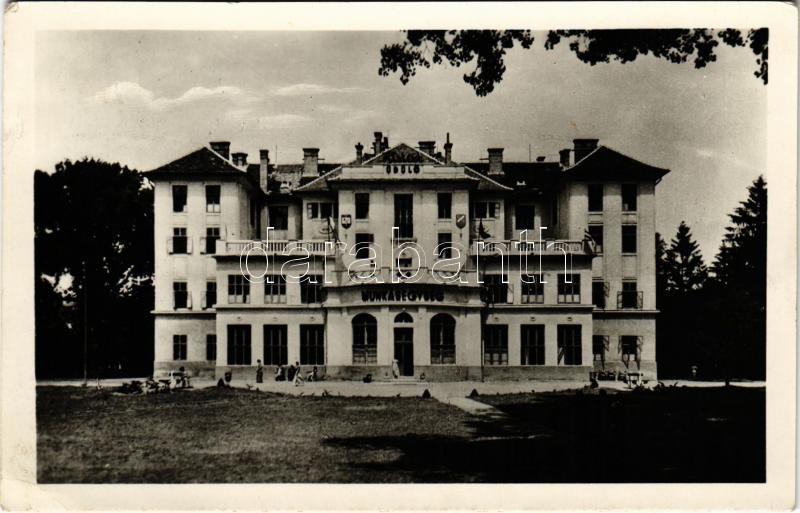 1953 Balatonföldvár, Kistext üdülő, "Munkásegység" felirat. ... https://www.darabanth.com/de/420-Fernauktion/420.0/Ansichtskarten/Ungarn~1000004/1953-Balatonfoldvar-Kistext-udulo-Munkasegyseg-felirat-Kepzomuveszeti-Alap-Kiadova~II2663829