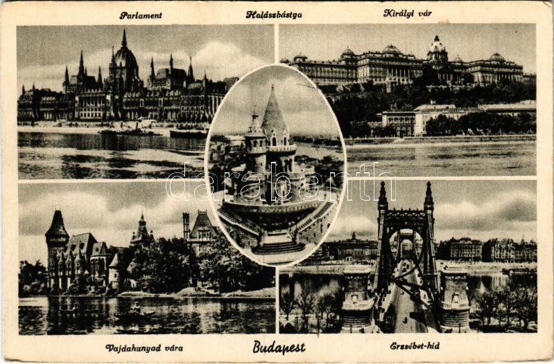 Budapest, Parlament, Halászbástya, Királyi vár, Vajdahunyad vára, Erzs... https://www.darabanth.com/de/420-Fernauktion/420.0/Ansichtskarten/Ungarn~1000004/Budapest-Parlament-Halaszbastya-Kiralyi-var-Vajdahunyad-vara-Erzsebet-hid-villamos-EK~II2655072