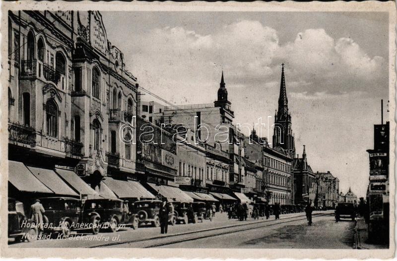 1941 Újvidék, Novi Sad; Kr. Aleksandra ul. / utca, autók, üzletek , hi... https://www.darabanth.com/de/420-Fernauktion/420.0/Ansichtskarten/Vojvodina~1000009/1941-Ujvidek-Novi-Sad-Kr-Aleksandra-ul-utca-autok-uzletek-hirdetooszlop-street-aut~II2661598