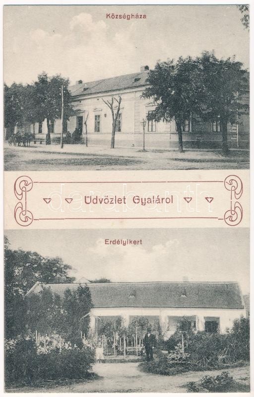 Gyála, Dala; Községháza, Erdélyi kert / town hall, garden, villa (r) https://www.darabanth.com/de/420-Fernauktion/420.0/Ansichtskarten/Vojvodina~1000009/Gyala-Dala-Kozseghaza-Erdelyi-kert-town-hall-garden-villa-r~II2583510