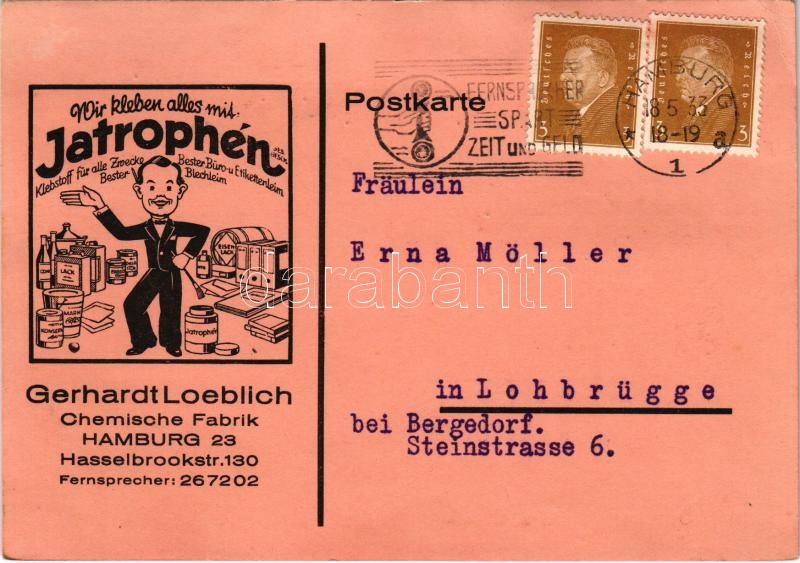 1933 Wir kleben alles mit "Jatrophén" Klebstoff für alle Zwe... https://www.darabanth.com/de/420-Fernauktion/420.0/Ansichtskarten/Werbungen~1000047/1933-Wir-kleben-alles-mit-Jatrophen-Klebstoff-fur-alle-Zwecke-Gerhardt-Loeblich-Chemische-Fabri~II2662085