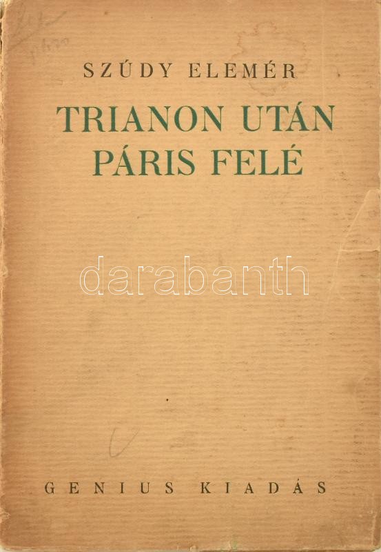 Szúdy Elemér: Trianon után Páris felé. Bp., Genius. Kiadói papírkötés,... https://www.darabanth.com/de/420-Fernauktion/420.0/Bucher/Bucher-Andere-kuriositaten~1500022/Szudy-Elemer-Trianon-utan-Paris-fele-Bp-Genius-Kiadoi-papirkotes-kisse-szeteso-al~II2655868