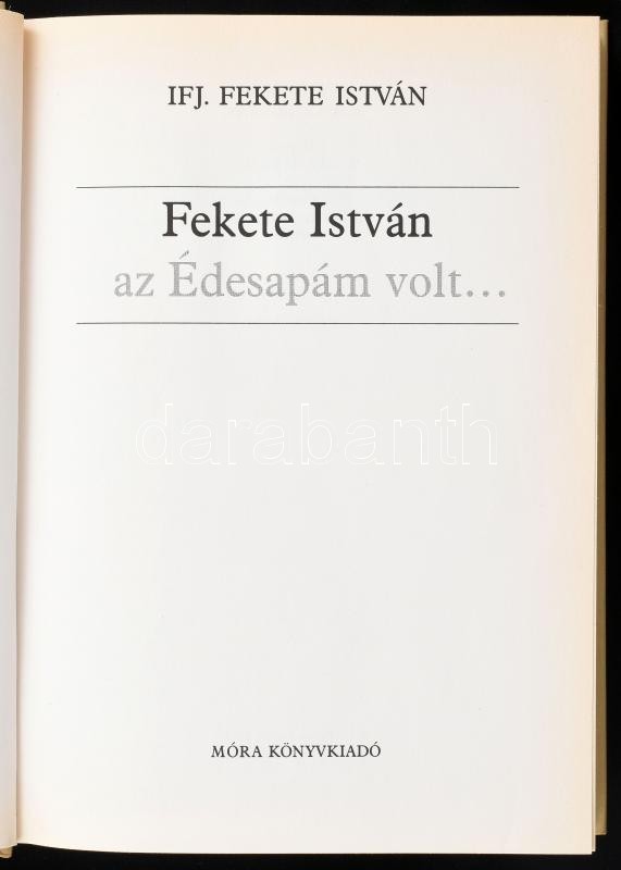 ifj. Fekete István: Fekete István az Édesapám volt... Bp., 2004, Móra.... https://www.darabanth.com/de/420-Fernauktion/420.0/Bucher/Bucher-Andere-kuriositaten~1500022/ifj-Fekete-Istvan-Fekete-Istvan-az-Edesapam-volt-Bp-2004-Mora-Fekete-feher-fotokkal~II2662243