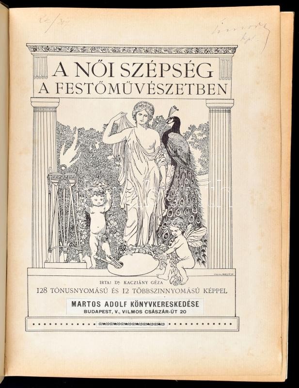 Dr. Kacziány Géza: A női szépség a festőművészetben. A Pesti Napló előfizetőinek készült kiadás. Bp, é.n., Pesti Napló. Számos fekete-fehér, illetve színes képpel. Kiadói aranyozott egészvászon kötésben, belül a gerincnél részben levált, néhol ceruzás jelölésekkel, kopottas állapotban.
