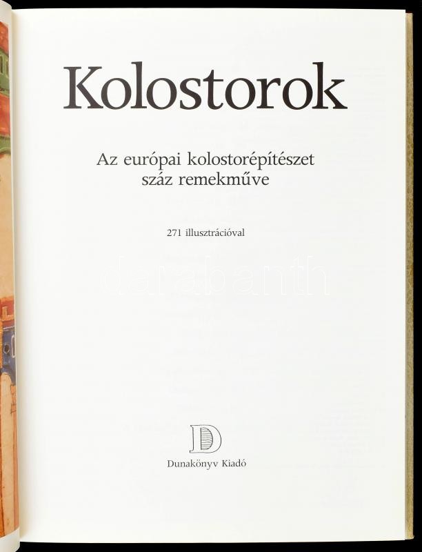 Marianne Bernhard: Kolostorok. Az európai kolostorépítészet száz remekműve. Ford.: Abai Ágnes, Kovács Zoltán. Bp., 1994, Dunakönyv. Kiadói aranyozott egészvászon-kötés, kiadói papír védőborítóban, jó állapotban.