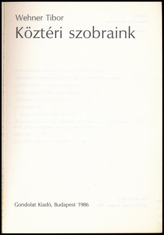 Wehner Tibor: Köztéri szobraink. Bp.,1986., Gondolat. Fekete-fehér fot... https://www.darabanth.com/de/420-Fernauktion/420.0/Bucher/Bucher-Architektur-Kunst~1500009/Wehner-Tibor-Kozteri-szobraink-Bp-1986-Gondolat-Fekete-feher-fotokkal-illusztralt-Kiado~II2665442