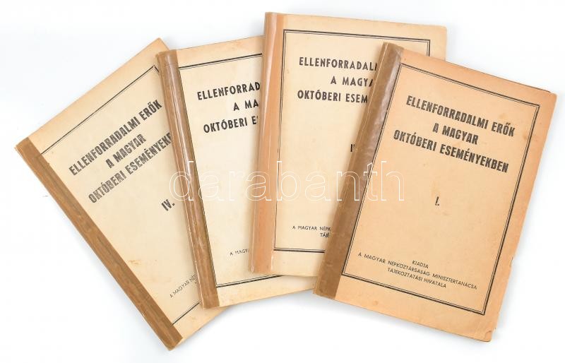 Ellenforradalmi erők a magyar októberi eseményekben. I-IV. köt. Bp., [... https://www.darabanth.com/de/420-Fernauktion/420.0/Bucher/Bucher-Geschichte~1500007/Ellenforradalmi-erok-a-magyar-oktoberi-esemenyekben-I-IV-kot-Bp-1957-Magyar-Nepkoztar~II2658039