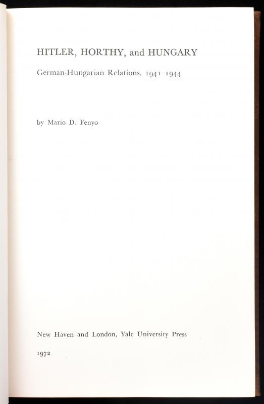 Mario D. Fenyo: Hitler, Horthy and Hungary. German-Hungarian Relations, 1941-1944. New Haven-London, 1972, Yale University Press. Angol nyelven. Kiadói kartonált papírkötés, kiadói papír védőborítóban, a védőborító ragasztott, a fülrészeket levágták.