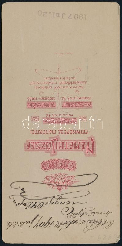 1907 Liebenwein (Lengyel) Alajos (1849-1918) kaposvári fényképész és rajztanár, keményhátú fotó Némethi József debreceni műterméből, hátoldalon aláírt, 16,5×8 cm