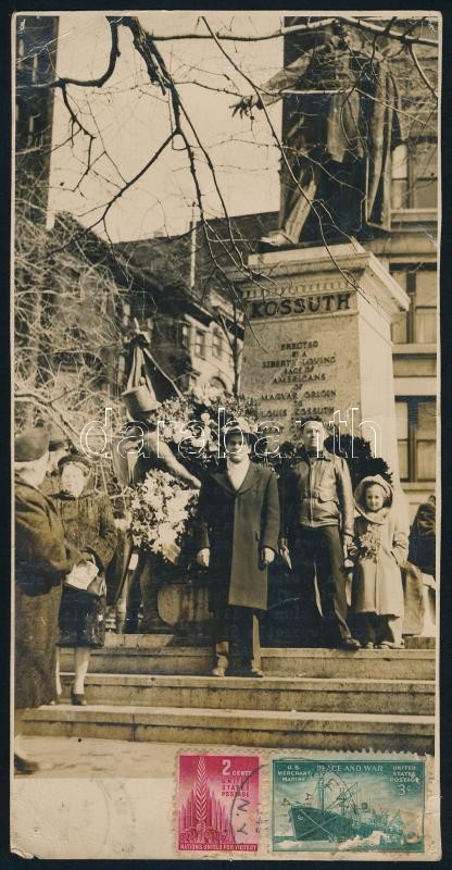 Beschreibung: 1949 A new-yorki Kossuth szobor fényképe képeslapon eszperantó nyelven megírva Magyarországra