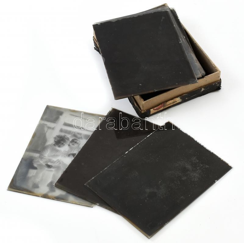Beschreibung: cca 1900 13 db vegyes üvegnegatív, főként családi felvételek, köztük sérültek, 9x12 cm