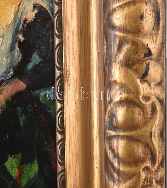 Beschreibung: Gyügyei Nagy Zsigmond (1872 - 1932) : Asszonyok. Olaj, karton. Jelezve balra lent: S.de Nagy. Díszes, enyhén sérült keretben, hátoldalán autográf, francia felirat. 34x48cm