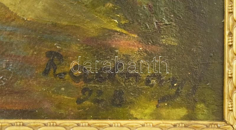 Beschreibung: Radnay József (1896-1963): Erdőszéle, 1928. Olaj, karton, jelezve jobbra lent. Dekoratív fakeretben, 35×50 cm