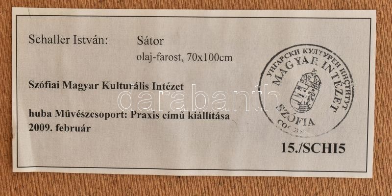 Schaller István (1970-): Sátor, 2007. Olaj, farost. Jelzett a hátoldal... https://www.darabanth.com/de/420-Fernauktion/420.0/Gemalde-und-Grafiken/Gemalde-und-Grafiken~500001/Schaller-Istvan-1970-Sator-2007-Olaj-farost-Jelzett-a-hatoldalan-Kiallitva-Szofiai-~II2654130
