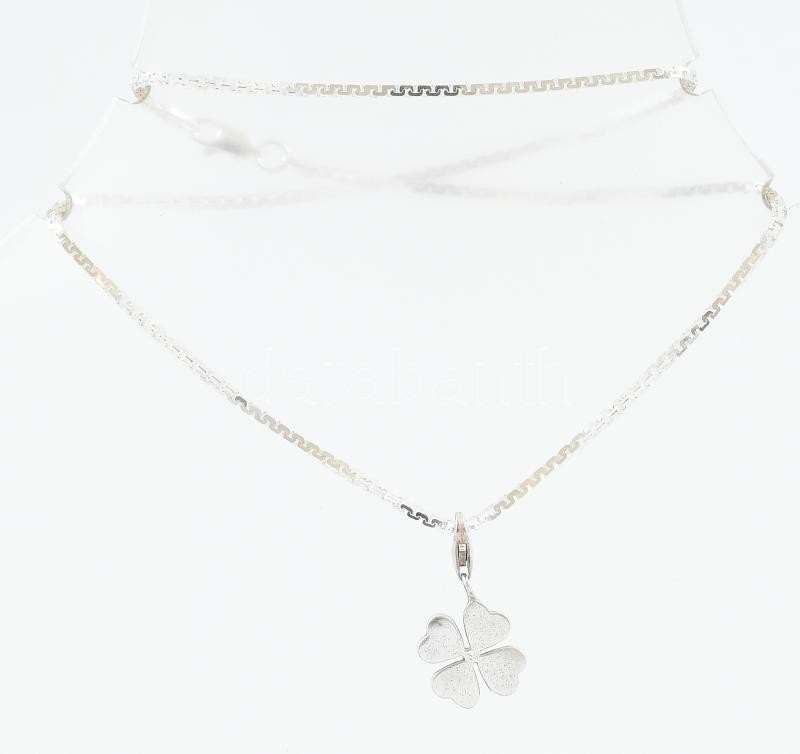 Ezüst(Ag) hullámmintás nyaklánc négylevelű lóhere függővel, jelzett, h... https://www.darabanth.com/de/420-Fernauktion/420.0/Juwellen-und-Kunstobjekte-aus-Edelmetall/Juwellen-und-Kunstobjekte-aus-Edelmetall~2000023/EzustAg-hullammintas-nyaklanc-negylevelu-lohere-fuggovel-jelzett-h-40-cm-2-5C3971-5-cm-~II2657329