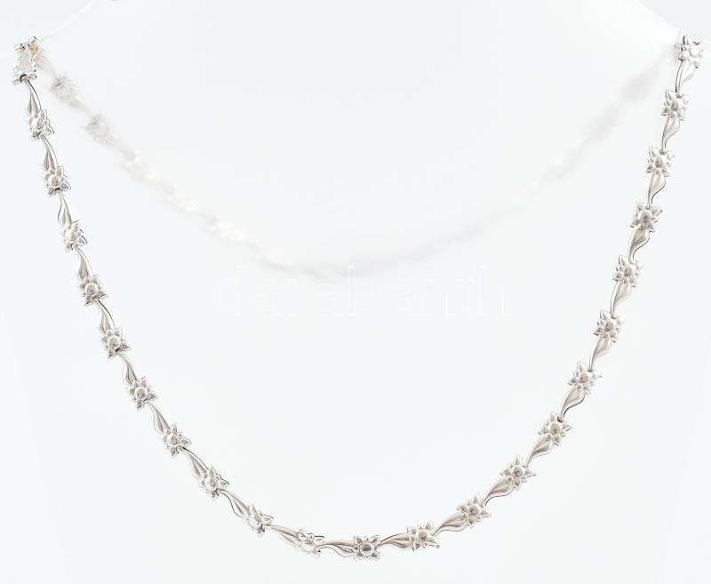 Beschreibung: Ezüst(Ag) nefelejcsmintás nyaklánc, jelzett, h: 44,5 cm, nettó: 7,2 g