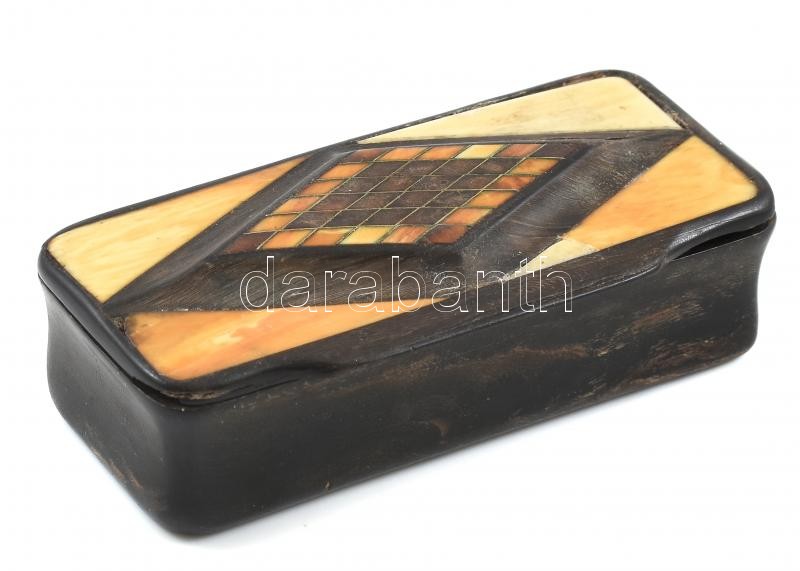 Régi szaru dobozka, csont betétekkel. Apró sérüléssel. 8,5x4x2,5cm https://www.darabanth.com/de/420-Fernauktion/420.0/Kunst-Dokumente-andere-Sammelgebiete/Antik~500008/Regi-szaru-dobozka-csont-betetekkel-Apro-serulessel-8-5x4x2-5cm~II2653582
