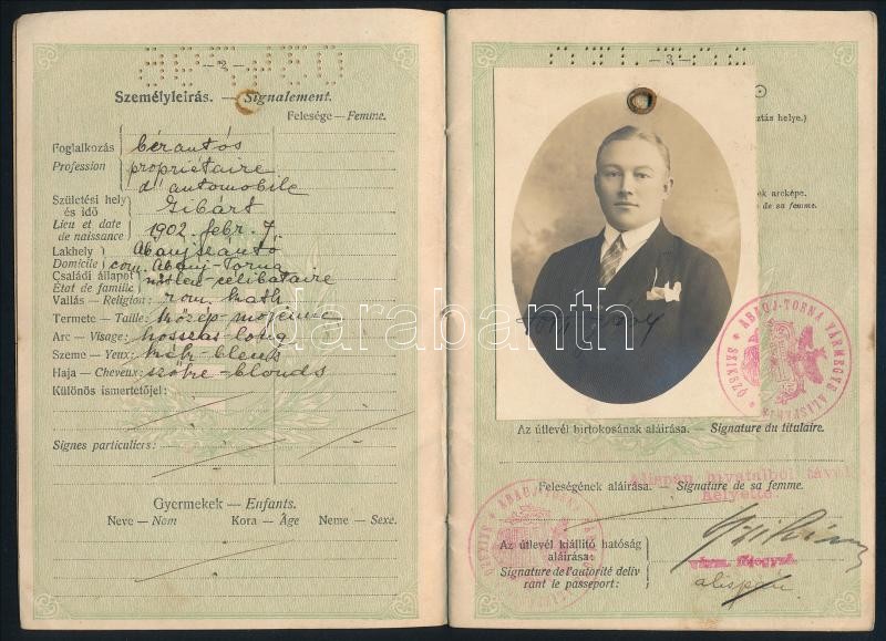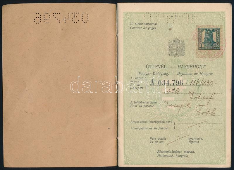 1930 Szikszó, Magyar Királyság által kiállított fényképes útlevél / Hu... https://www.darabanth.com/de/420-Fernauktion/420.0/Kunst-Dokumente-andere-Sammelgebiete/Dokument~500018/1930-Szikszo-Magyar-Kiralysag-altal-kiallitott-fenykepes-utlevel-Hungarian-passport~II2665275