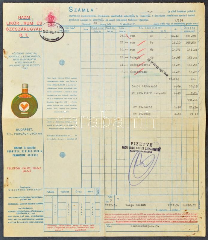 1943 Bp., Hazai Likőr-, Rum- és Szeszárugyár Rt. (Millenium Keserű) na... https://www.darabanth.com/de/420-Fernauktion/420.0/Kunst-Dokumente-andere-Sammelgebiete/Dokument~500018/1943-Bp-Hazai-Likor-Rum-es-Szeszarugyar-Rt-Millenium-Keseru-nagymeretu-litografalt-~II2660875