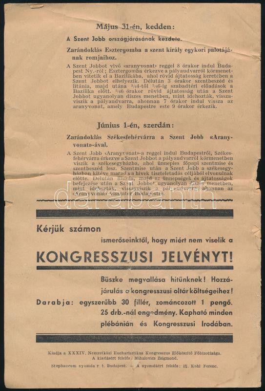 1938 Bp., XXXIV. Nemzetközi Eucharisztikus Kongresszus programja, terv... https://www.darabanth.com/de/420-Fernauktion/420.0/Kunst-Dokumente-andere-Sammelgebiete/Drucksachen~1500002/1938-Bp-XXXIV-Nemzetkozi-Eucharisztikus-Kongresszus-programja-tervezet-szelen-szakadasok~II2660616
