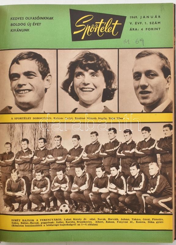 1969 Sportélet V. évf. 1-12. sz. Teljes évfolyam, félvászon-kötésben. https://www.darabanth.com/de/420-Fernauktion/420.0/Kunst-Dokumente-andere-Sammelgebiete/Drucksachen~1500002/1969-Sportelet-V-evf-1-12-sz-Teljes-evfolyam-felvaszon-kotesben~II2666800