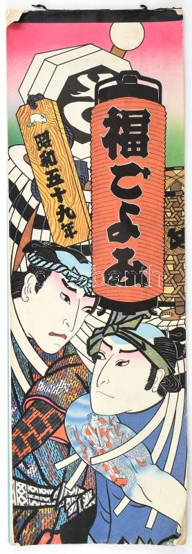 Beschreibung: 1984. Japán naptár, fametszetekről készült nyomatokkal, kisebb sérülésekkel. 53,5x17,5cm
