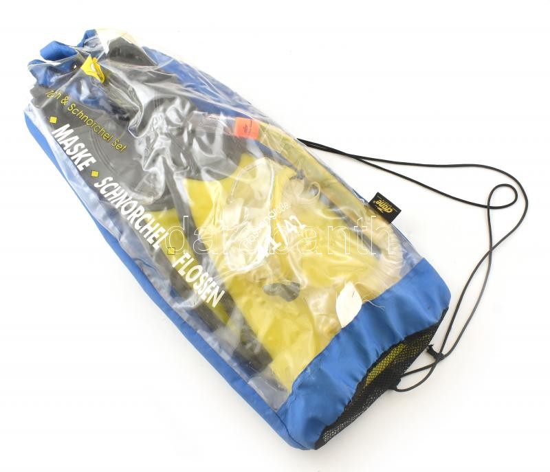Beschreibung: Amatőr búvárfelszerelés, békatalp, pipa, szemüveg.