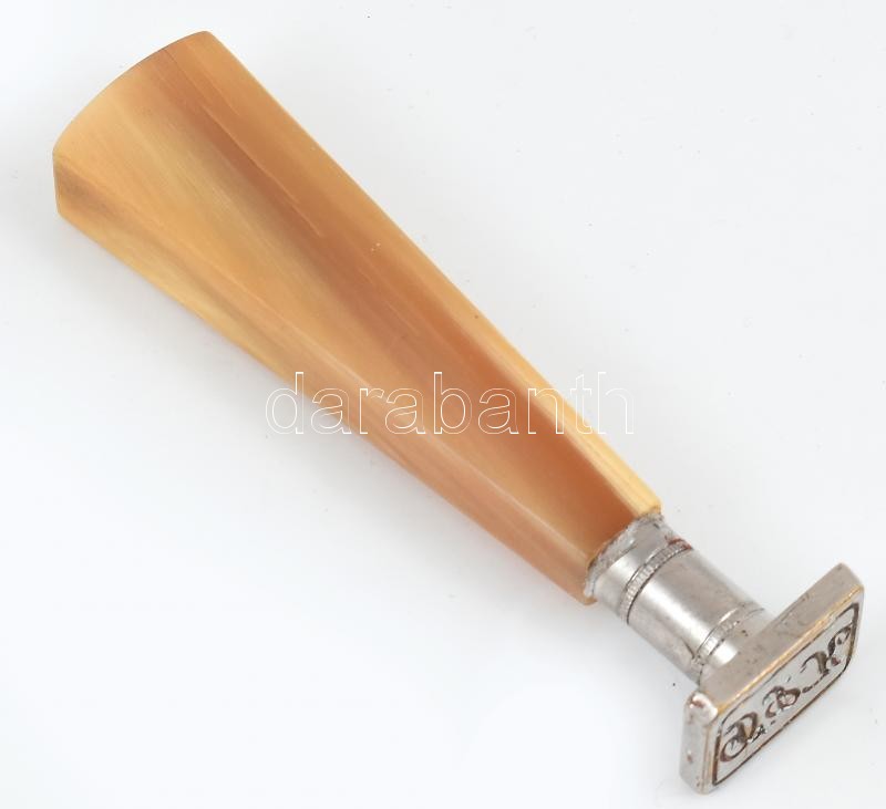 Beschreibung: D.P.K. vésett pecsétnyomó, fém és szaru, kopásnyomokkal, m: 8 cm