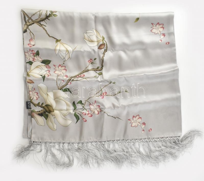 Ezüstszínű, virágmintás, rojtos selyem sál, kb. 175x50 cm https://www.darabanth.com/de/420-Fernauktion/420.0/Kunst-Dokumente-andere-Sammelgebiete/Flohmarkt~500012/Ezustszinu-viragmintas-rojtos-selyem-sal-kb-175x50-cm~II2663485