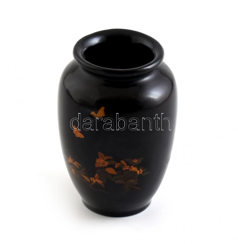 Beschreibung: Japán, dekoratív lakk váza, alján jelzett, apró kopásnyomokkal, m: 11 cm