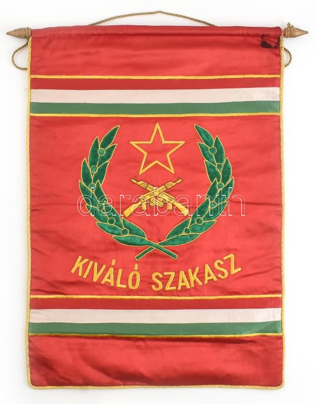 "Kiváló szakasz" asztali selyemzászló, foltos, 57×39 cm https://www.darabanth.com/de/420-Fernauktion/420.0/Kunst-Dokumente-andere-Sammelgebiete/Flohmarkt~500012/Kivalo-szakasz-asztali-selyemzaszlo-foltos-57C39739-cm~II2655578