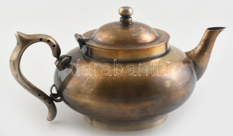 Teáskanna, fém, kopott, jelzett, m: 12 cm https://www.darabanth.com/de/420-Fernauktion/420.0/Kunst-Dokumente-andere-Sammelgebiete/Flohmarkt~500012/Teaskanna-fem-kopott-jelzett-m-12-cm~II2656649