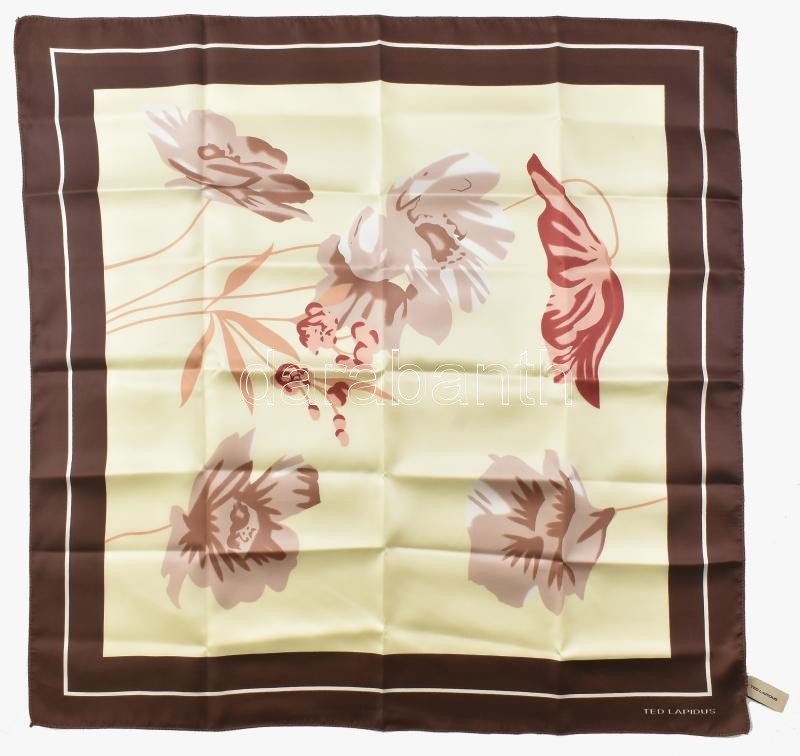 Ted Lapidus barna szélű, virágmintás selyem kendő, kb. 70x70 cm https://www.darabanth.com/de/420-Fernauktion/420.0/Kunst-Dokumente-andere-Sammelgebiete/Flohmarkt~500012/Ted-Lapidus-barna-szelu-viragmintas-selyem-kendo-kb-70x70-cm~II2663543