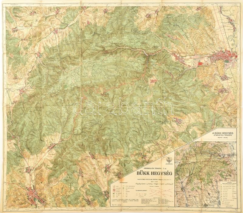 Beschreibung: 1933 Bükk-hegység, Kirándulók térképe 7. sz., 1 : 50.000, M. Kir. Állami Térképészet, szakadásokkal, 88,5x68,5 cm