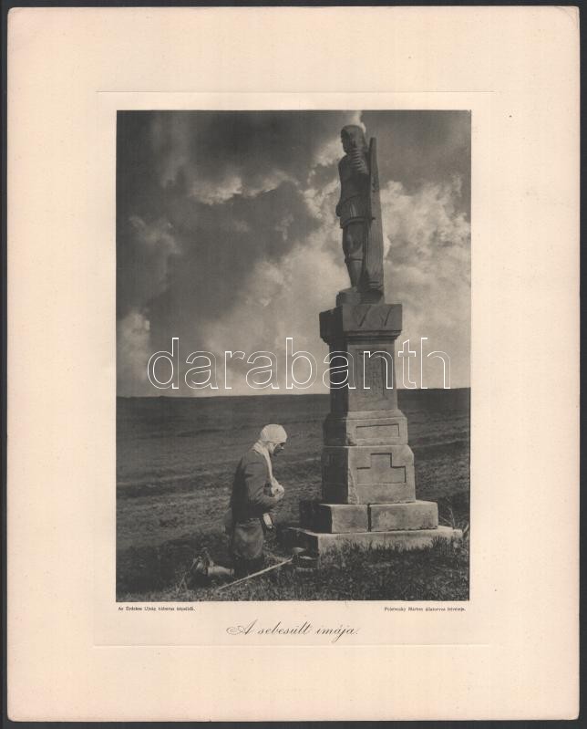 cca 1914-1918 Az Érdekes Újság 4 db I. világháborús képe (Hírt hoz a léggömb, Fürdés orosz bföldön, A sebesült imája, A montenegrói hegyek között). A Légrády Testvérek kiadása (Az Országos Magyar Hadimúzeum Egyesület kizárólagos terjesztése).Fénynyomat, papír, egyik lap széle kissé foltos, 27x20 cm