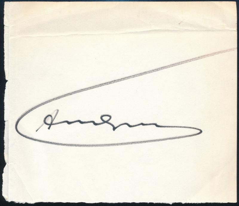 Andy Warhol (1928-1987) amerikai képzőművész, filmrendező, a pop-art irányzat meghatározó alakjának autográf aláírása papírlapon / Autograph signature of Andy Warhol (1928-1987) American artist, director, leading figure of the pop art movement