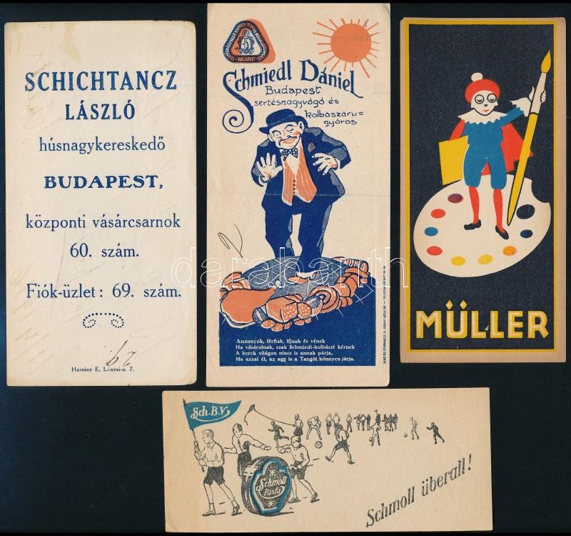 4 db számolócédula (Schmoll, Müller, stb.) https://www.darabanth.com/de/420-Fernauktion/420.0/Kunst-Dokumente-andere-Sammelgebiete/Werbungen~500022/4-db-szamolocedula-Schmoll-Muller-stb~II2666772