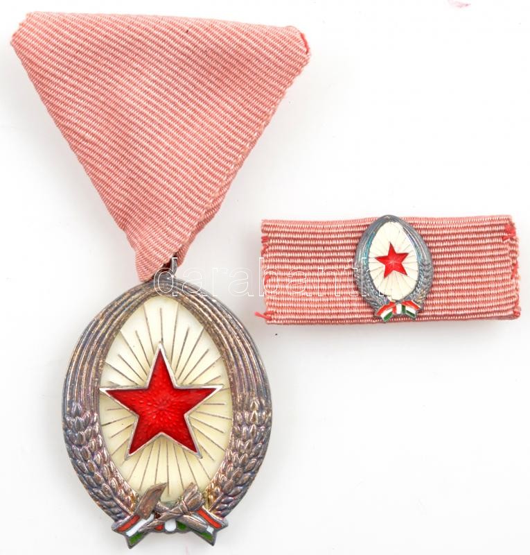 1964. "A Munka Érdemrend" ezüstözött fokozata, zománcozott, ezüstözött bronz kitüntetés mellszalagon, miniatűrrel és szalagsávval, tokban T:1-