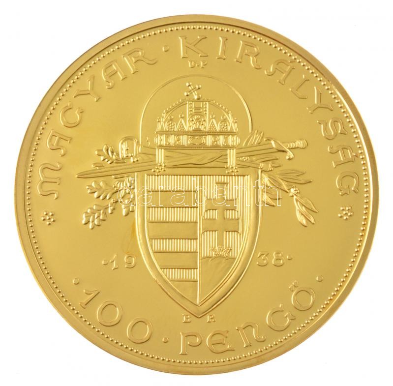 Beschreibung: 1938. 100P aranyozott Cu utánverete "R" jelzéssel, kapszulában T:PP kis karc