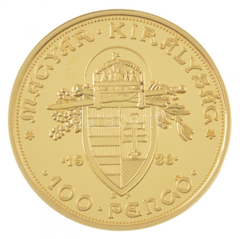 DN "Magyar aranypénzek utánveretben - 100 Pengő" aranyozott ... https://www.darabanth.com/de/420-Fernauktion/420.0/Numismatik/Moderne-Beischlage-Fantasiemunzen~2000012/DN-Magyar-aranypenzek-utanveretben-100-Pengo-aranyozott-Ag-emlekerem-kapszulaban-tanusi~II2662198