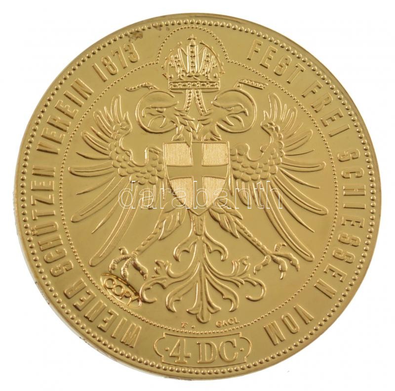 Beschreibung: DN "Osztrák-Magyar Monarchia pénzei utánveretben - 1873. 4 Dukát" aranyozott Cu-Ni emlékérem "COPY" beütéssel, tanúsítvánnyal T:PP