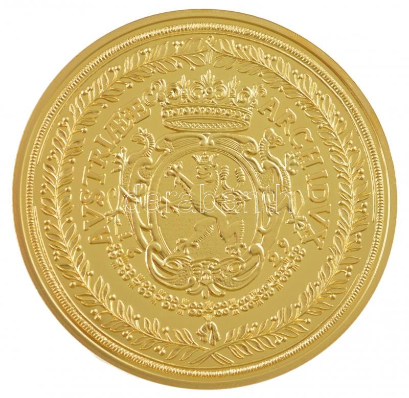 Beschreibung: DN "Történelmi aranypénzek - III. Ferdinánd 100 Dukát 1629" aranyozott Cu-Ni utánveret "COPY" beütéssel, kapszulában (26,39g/38mm) T:PP