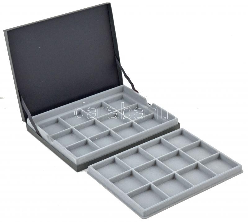 Beschreibung: Éremtartó kazetta egy kivehető tálcával, összesen 24 férőhellyel (50x50mm), használt, de újszerű állapotban