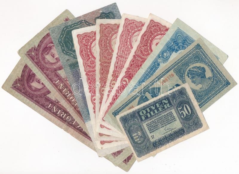 Beschreibung: 1915-1949. 10db-os Korona-, Pengő- és Forint bankjegytétel T:III,III-