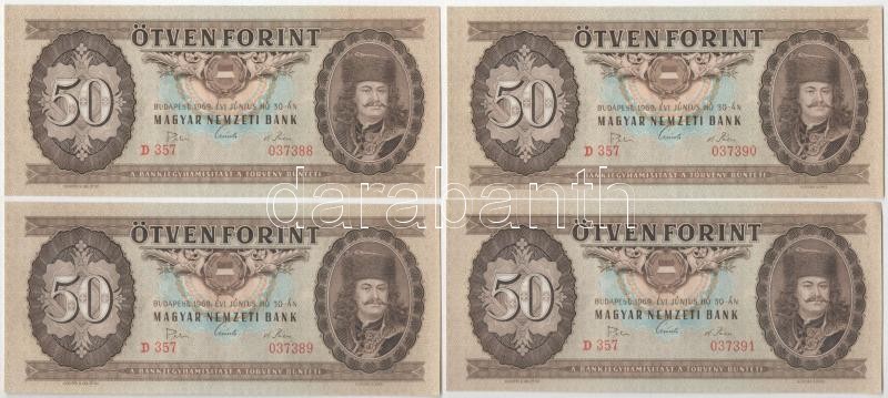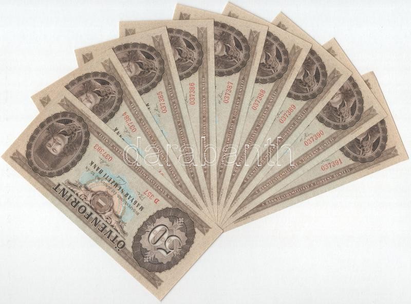 Beschreibung: 1969. 50Ft (9x) "D 357 037383 - D 357 037391" sorszámkövetők T:III szép papír