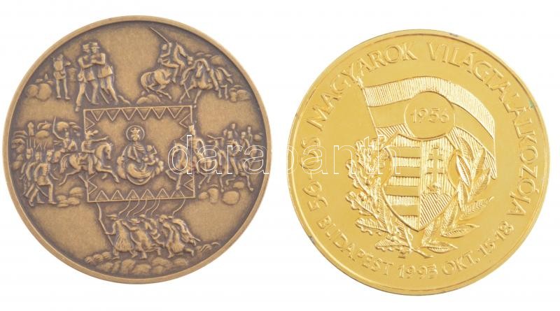 1993. "56-os Magyarok Világtalálkozója - 1956 - Budapest 1993. okt. 15-18 / A nemzeti erők összefogásával lesz magyar feltámadás - Ébredjetek!" aranyozott fém emlékérem (42,5mm) +