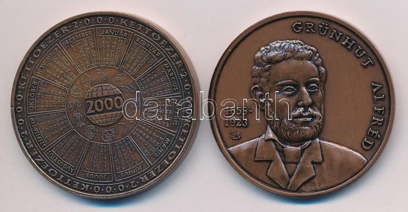 Beschreibung: 2000. "MÉE köszönti az Államalapítás ezredik évfordulóját" kétoldalas Br naptárérem (42,5mm) + Csóka Zsuzsanna (1962-) 2013. "MÉE 43. Vándorgyűlése Nagykanizsa / Grünhut Alfréd 1853-1923" Br emlékérem (42,5mm) T:1,1-