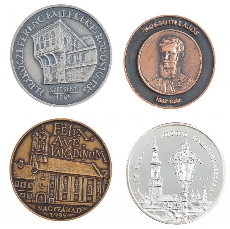 Beschreibung: 4xklf ezüstözött Br és Br emlékérem, közte "Rákóczi emlékére", "Szent László / Nagyvárad", "125 éves a soproni gázszolgáltatás" T:1-2